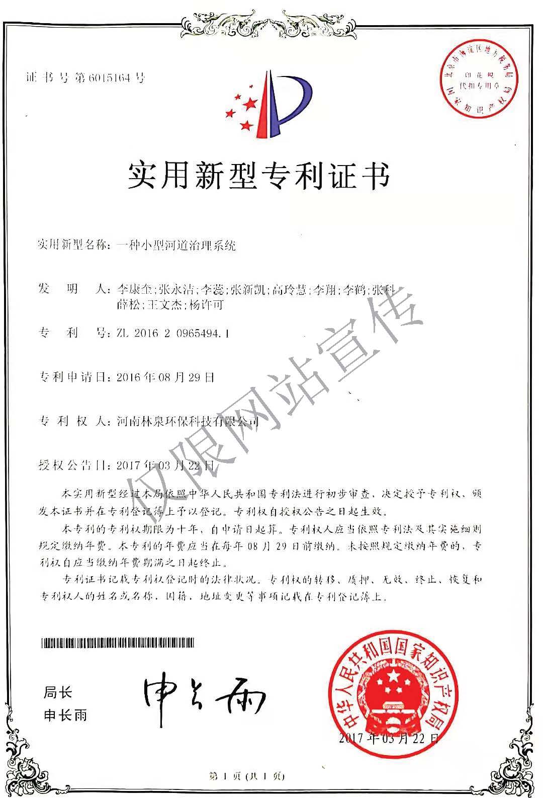 實(shí)用新型專利證書